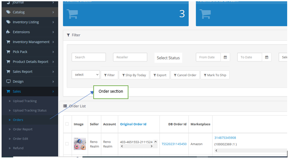 • Total count of today’s Pending Orders