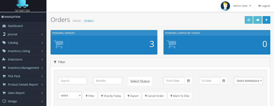 • Pending Shipped Orders for Today