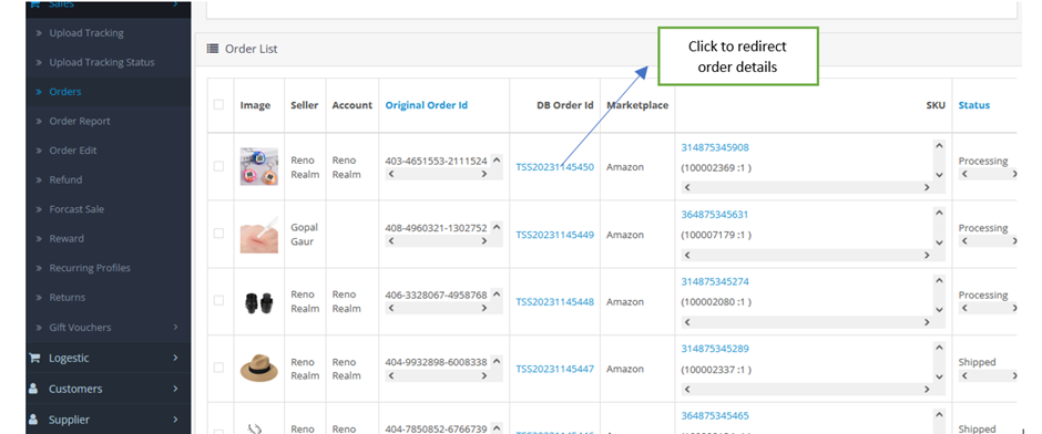 In the “DB Order ID” column of the table, click any order ID. You will be redirected to the Order Details Page.