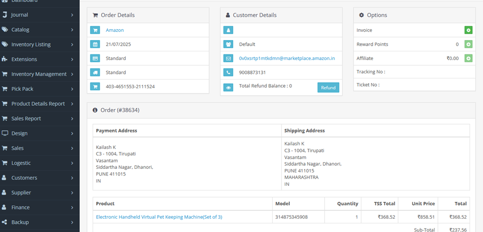• The refund details are saved into the database for future reference.