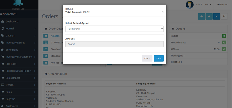 • Enter the refund amount and submit.