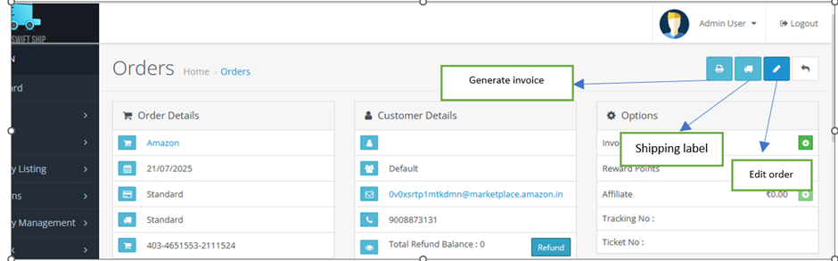 These actions are also available from the top-right section of the Order Details Page.