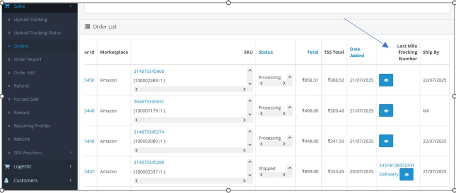 In the column labeled “Last Mile Tracking Number”: